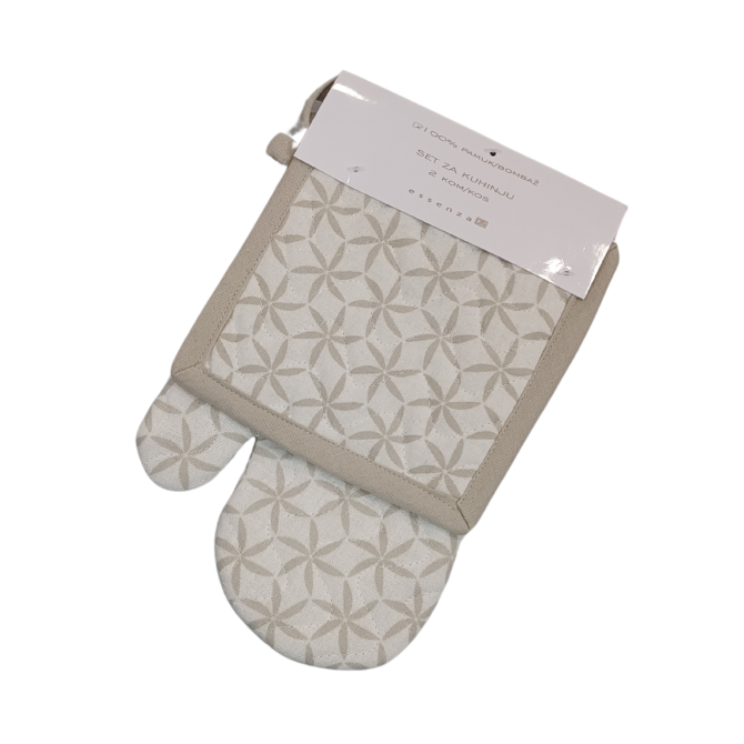Practical and stylish oven mitt & pot holder set made from durable, heat-resistant cotton. Designed to protect your hands from hot pots, pans and baking trays, this set is a must-have kitchen accessory. Comfortable, easy to clean and perfect for cooking, baking or gifting.