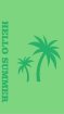Monochrome beach towel with palm motif and Hello Summer lettering.