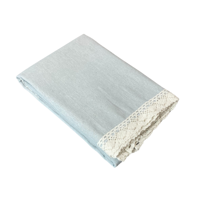 Elegant tablecloth in gray/blue with decorative lace made of high-quality combination of cotton and linen, easy to iron and maintain. Ideal for dining rooms, kitchens or special occasions.