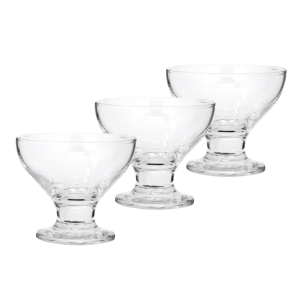 Elegantni set zdjelica za sladoled 3/1 zapremnine 282 ml idealan je za posluživanje sladoleda, voćnih salata ili deserata. Zdjele su izrađene od kvalitetnog stakla i dolaze na praktičnom stalku koji olakšava posluživanje.